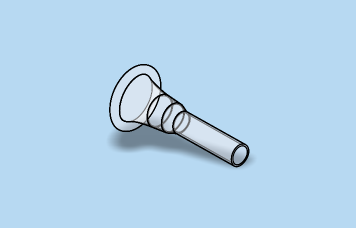 is rolled over the head and shaft of the penis—and a heavier funnel-shaped, cup section at the other where urine is drained from into a bag or