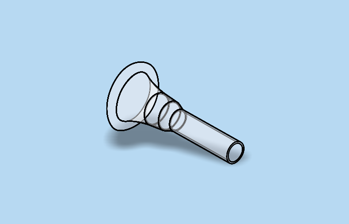 is rolled over the head and shaft of the penis—and a heavier funnel-shaped, cup section at the other where urine is drained from into a bag or