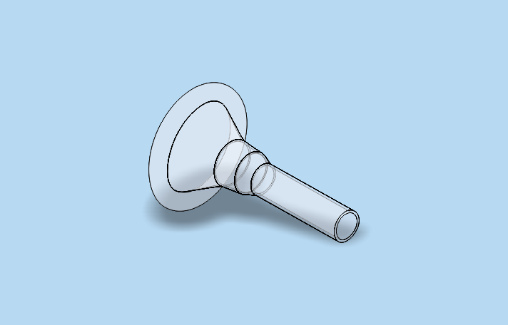 is rolled over the head and shaft of the penis—and a heavier funnel-shaped, cup section at the other where urine is drained from into a bag or